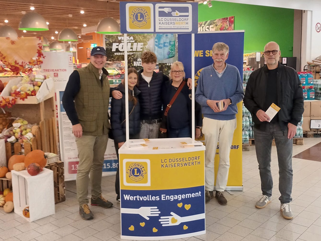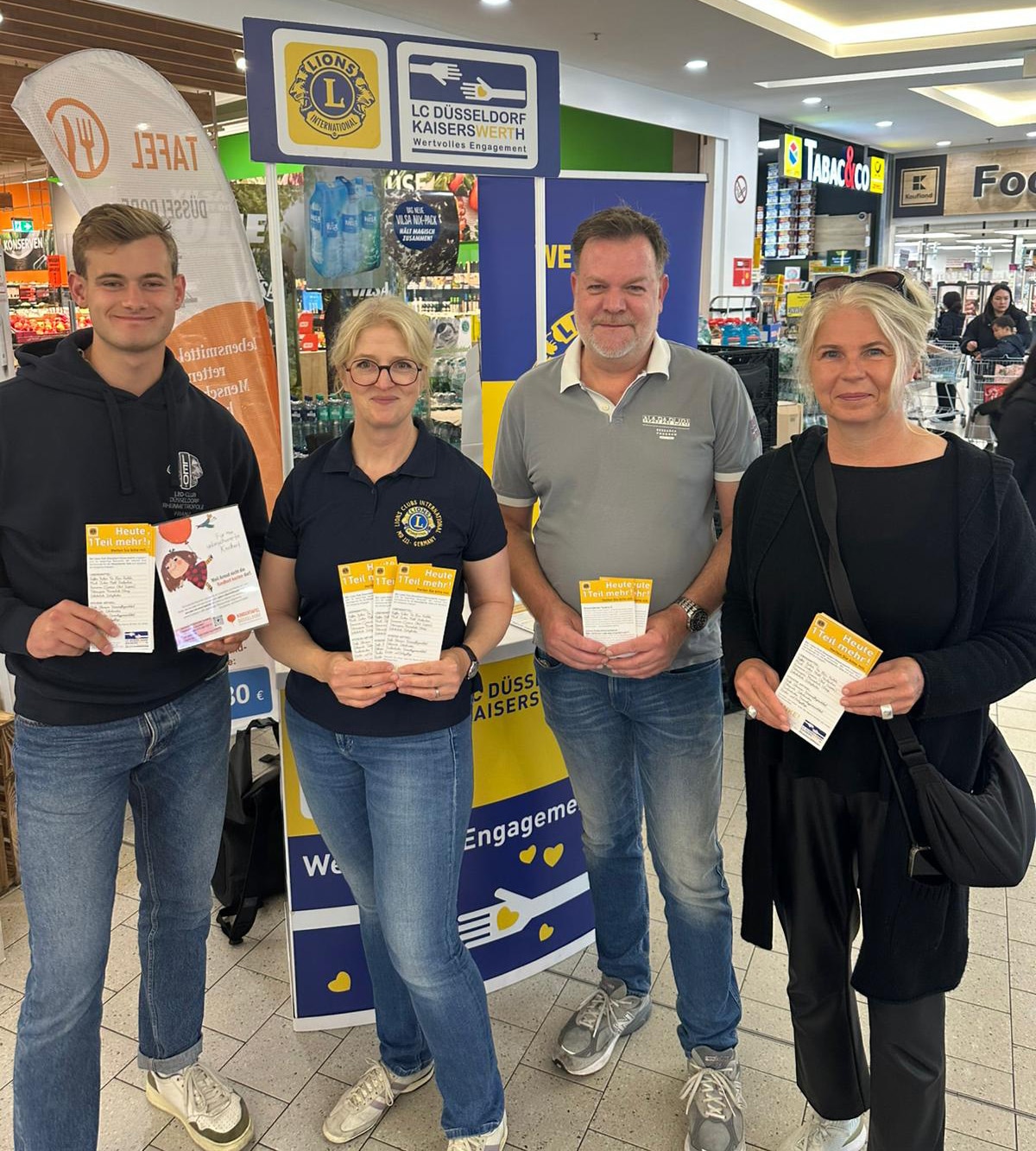 Bereits zum wiederholten Mal hat der Lions Club Düsseldorf-Kaiserswerth seine beliebte „1-Teil-mehr“-Aktion durchgeführt. Am Samstag, den 27. September, konnten die Clubmitglieder gemeinsam mit vielen engagierten Spender/innen in der „Kaufland“-Filiale im Derendorfer Einkaufszentrum beeindruckende 50 Kisten mit haltbaren Lebensmitteln und Hygieneartikeln für Hilfsbedürftige sammeln. Der geschätzte Warenwert beläuft sich auf rund 1.500 Euro und die spenden gehen direkt an die Düsseldorfer Tafel e.V..